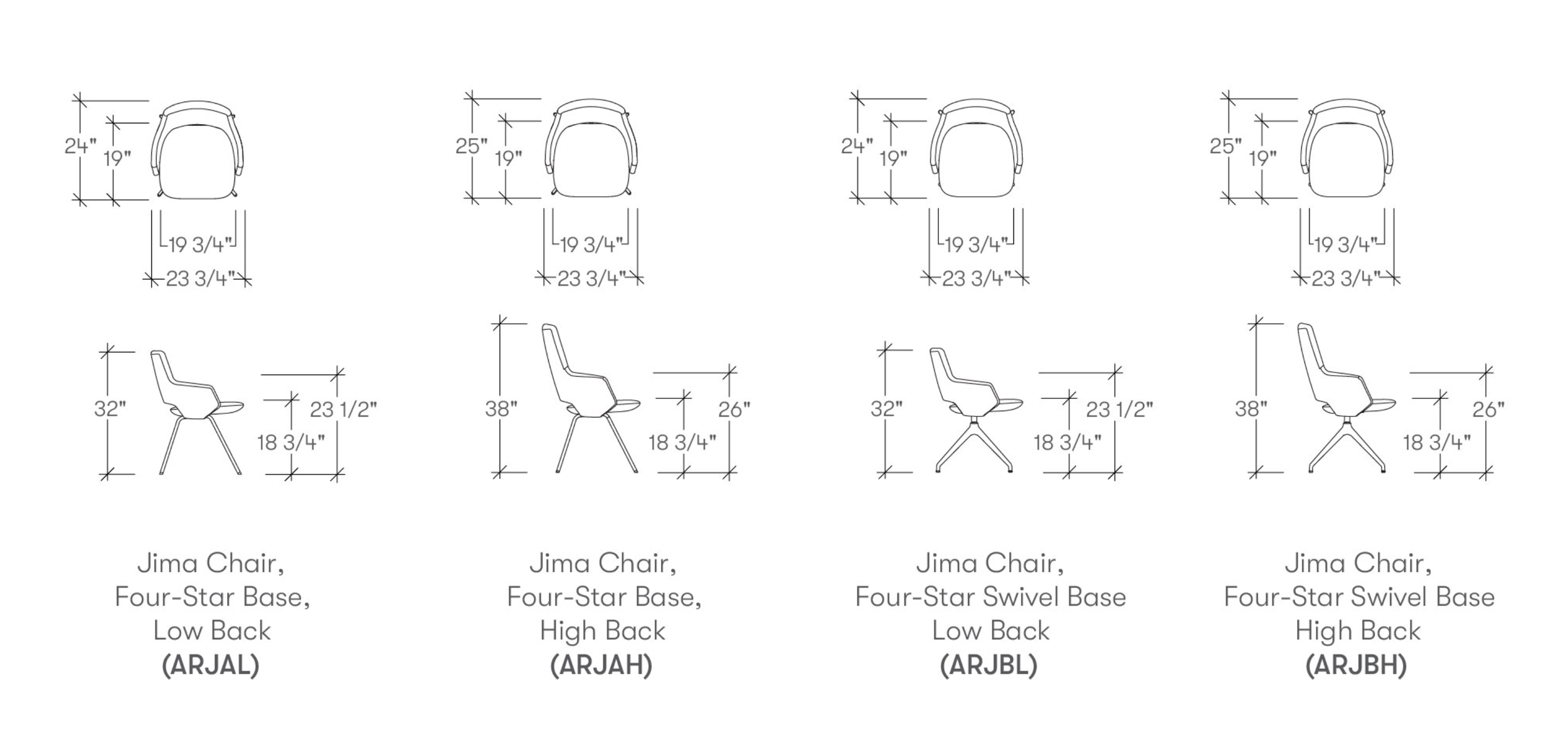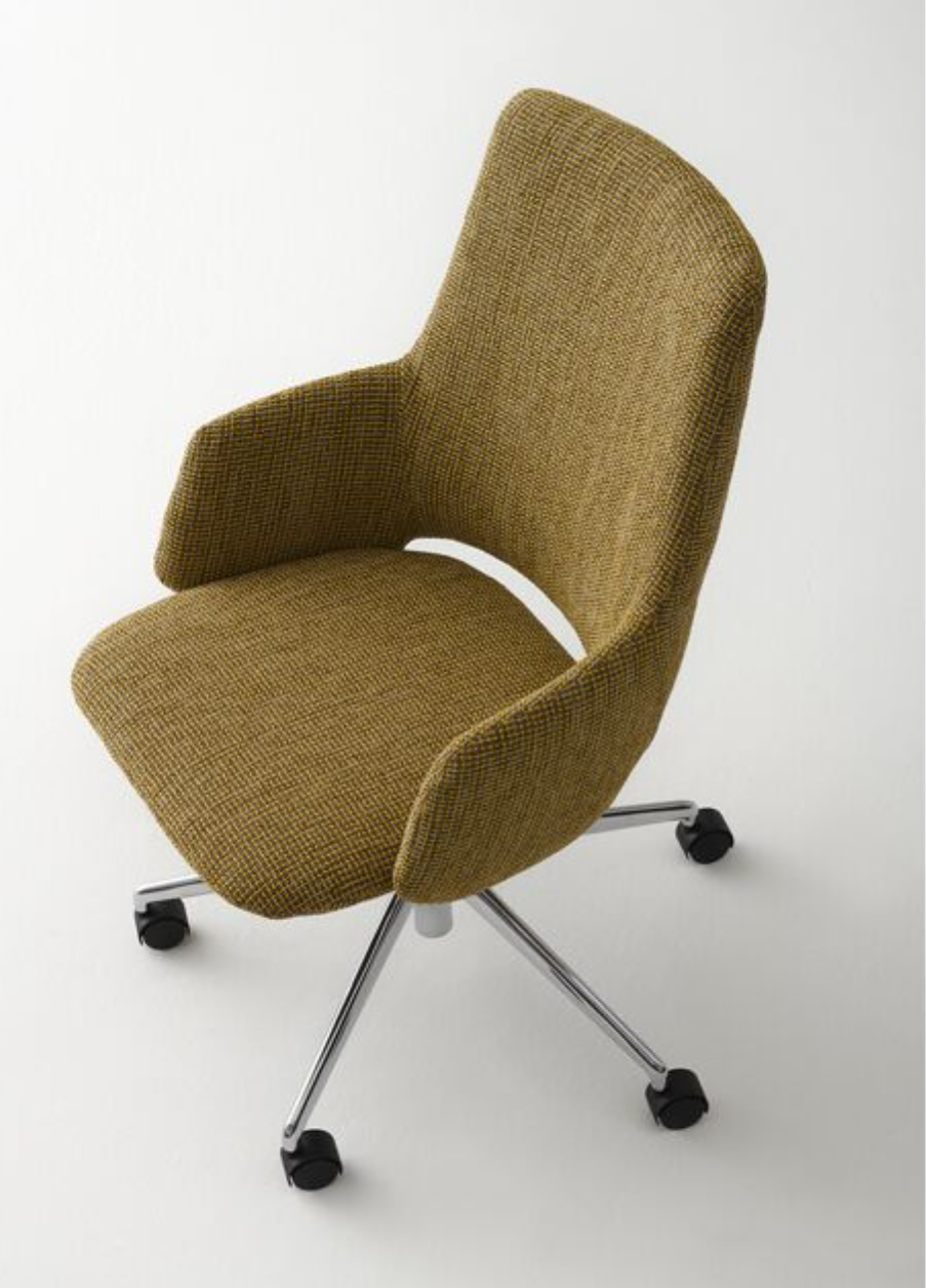 Jima is available in three versions: a steel 4-legged base, an elegant swivel star-base, and a 5-legged height-adjustable swivel base with castors. The chair is offered in an extensive range of fabrics and colors, encouraging and accommodating any interior style.