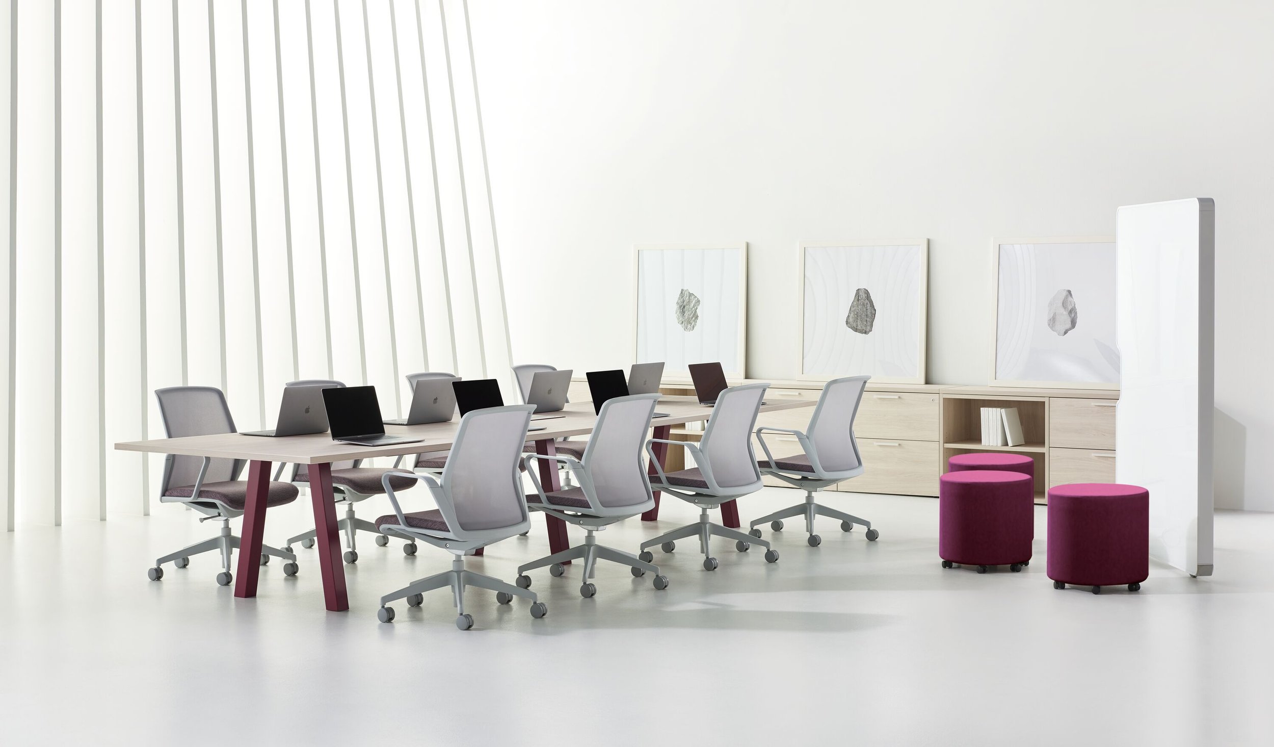 Just-Us is easy to use and light-spirited, making it a welcoming destination spanning meeting rooms, touchdown workstations and enclaves to the home office. Designed by Justus Kolberg, designer of Teknion’s popular Around.