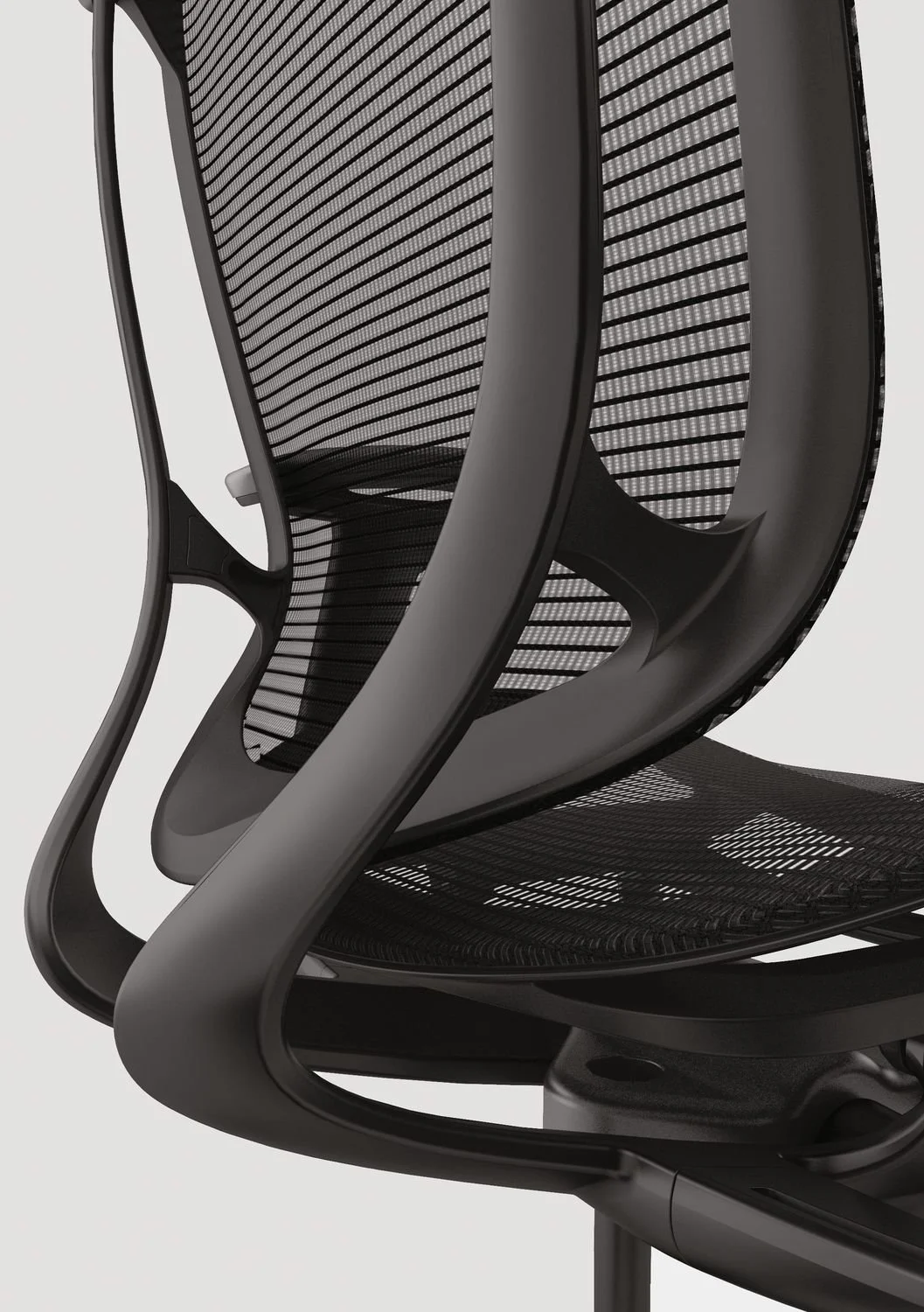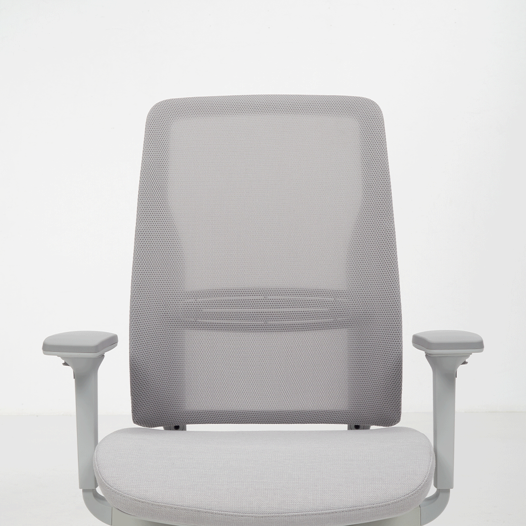 • Cushioned mesh textile – a mesh back is also applied to the uniform frame structure for an alternate style within the same design expression. Featuring a dual-textured weave, the mesh is breathable and provides user back support either with or without a lumbar element option